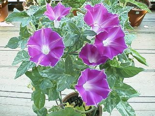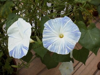 2000年に栽培した、いろいろなアサガオの画像です。変化朝顔と呼ばれる変