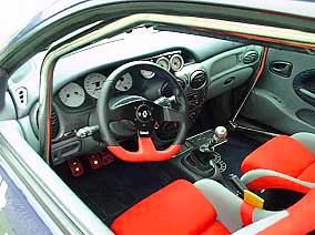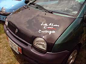 |  | これは田吾作さんのトゥインゴ ワンオフでカーボンボンネットを造ってもらったようで、すごく軽かったです。 運転席は見覚えの有るクリオ16V(フェーズ2)のシートが装着されています。 |