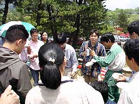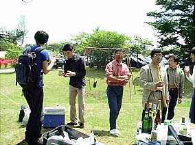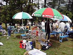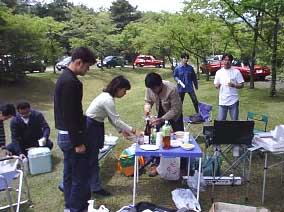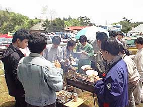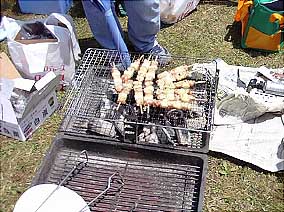 |  | あちらこちらではピクニックセット満開で、バーベキューや焼き肉パーティーが開かれていました。 これはトゥインゴの皆さんの焼き肉パーティー。 みんなの貢ぎ物が焼かれていきます。 |