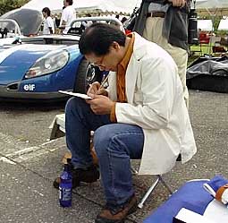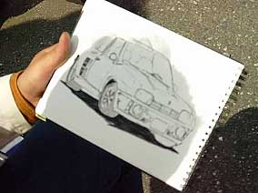 |  | 会場には車のイラストレーターきもだこよしさんがいらっしゃってました。 自分の車のイラストをその場で描いてくれます。 描いた絵をフレームに入れて1500円!! |