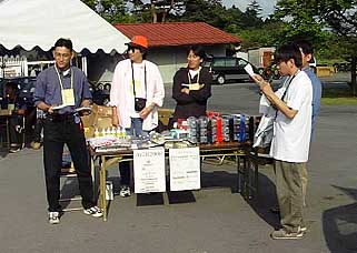 | ジムカーナの表彰式。 上位者のみならず、全ジムカーナ参加者も商品を頂けました。 | アンケートを書いた参加者全員にチャンスがある抽選会。 景品がすごく多くて、ほとんど皆に当ったようです。 私もモチュールのオイルが当りました、ラッキー! |