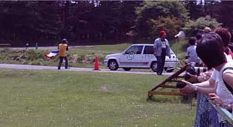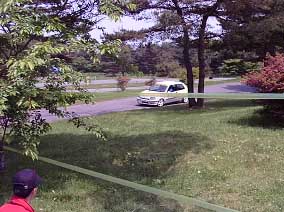 カーブの先に人がいるなんて・・・私のような運転だとこの人達の運命は危ぶまれるかも。