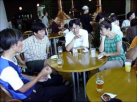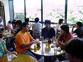 避暑のため会場2階の待合室で全員の到着を待ちます。