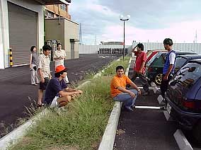 食事後は駐車場で歓談。