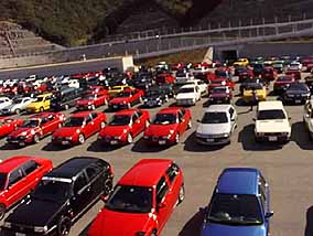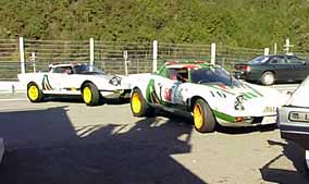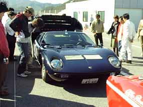 |  | 走行会出場者の駐車スペースです。 ランボルギーニミウラには人だかりも。 |