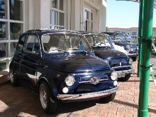 お洒落なリゾートマンションの一階にチンクエチェント博物館はありました。 建物の前にはFIAT500やFIAT600などが並べられています。 |