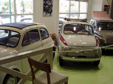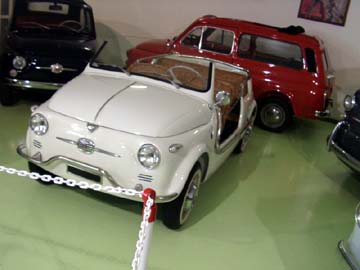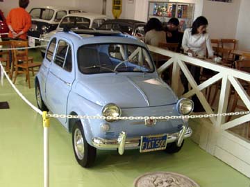 いろいろなチンクエチェントが展示されています。 鎖で仕切られていて車に直接触れることはできません、博物館ですから当然かもしれませんね。 |