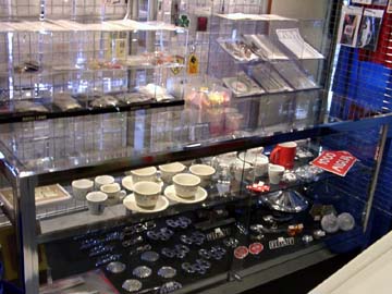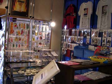 扉を入ると田中むねよし氏のグッズなどが販売されている「むねよしGARAGE14.7」があります。 自動車好きにはたまらないいろんなグッズが販売されています。 Tシャツにステッカー、カップやキーホルダーなど・・・ |