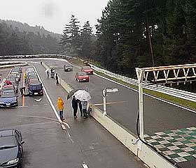 写真左にある掲示板に今日のコースレコードと、今ここを通過した車のラップタイムが表示されます。