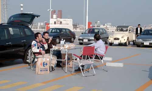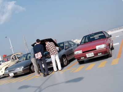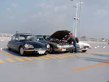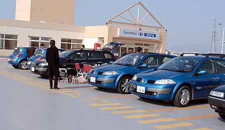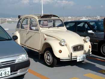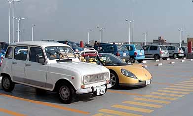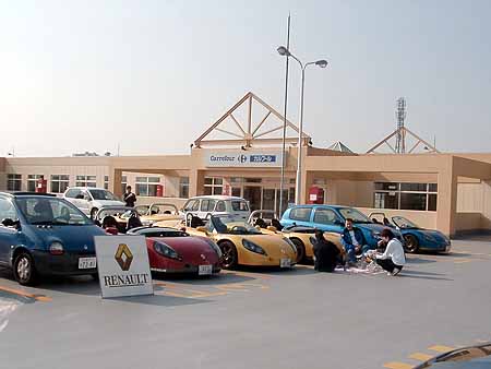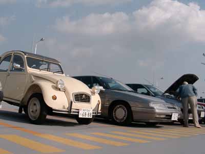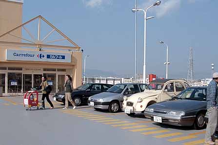 フレンチ−フレンチ 2004年11月21日に兵庫県尼崎市のカルフール尼崎店で開催されたフランス車のイベント「フレンチ−フレンチ」に参加しました。 このイベントはシトロエンオーナーがカルフール尼崎に趣旨を説明したところ、快く承諾していただき開催されたイベントで、お昼過ぎまでは屋上駐車場の利用が殆ど無いので、ほぼ貸し切りでフランス車オーナーが自由に過ごせることになりました。 それに車のイベントは不自由な場所が多いですが、ここは高速道路や主要幹線道から近く、それになんと言ってもスーパーマーケットの上なので飲み物食べ物はエスカレーターを下りればすぐ買えるし、朝早くは無料でパンが食べられるスポットがあったりと良い事ずくめ。 お天気も良くて楽しい一日でした。