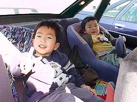 おいやんの車はチャイルドシート2連装。 この日の海は最高!!絶景でした。