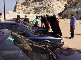 第一の目的地、白崎海岸に到着。 クラブハウスでお茶を頂きました。 白い岩肌が奇麗なとても気持ちの良い所です。 お決まりのボンネットオープン。
