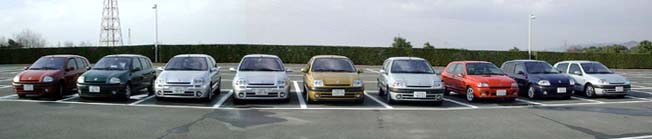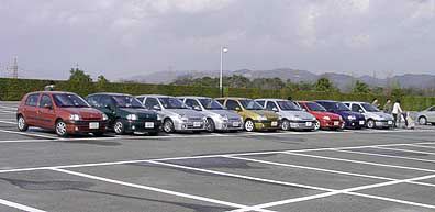 | 駐車場に戻って試乗会。 人気はRS。 また同じ車を並べると一見同じ車でも製造時期がちょっと違うだけでいろいろ違うのが分かりました。 | |