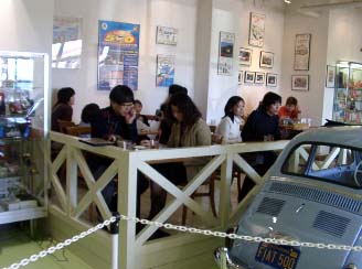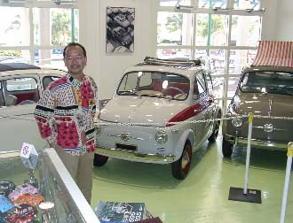 | 各自会場にある「むねよしガレージ14.7」で買い物をしたりチンクエチェント博物館で車を眺めながらカフェでお茶をしたりしました。 またチンクエチェント博物館の館長から展示している車に付いて詳しい解説をしていただくというおまけも。 |