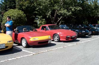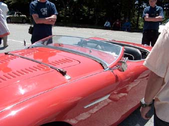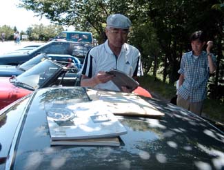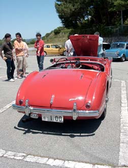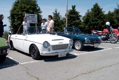 | おお!これはダットサンフェアレディー、大切に乗られているようです。 となりはエスハチ。 オールドタイマーファンにはこたえられない車がどこからともなく集まってくるのがTDMの魅力です。 | |