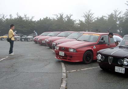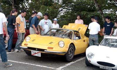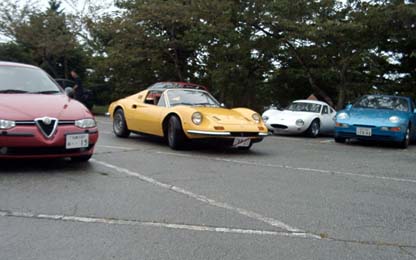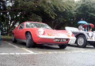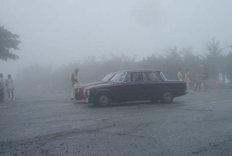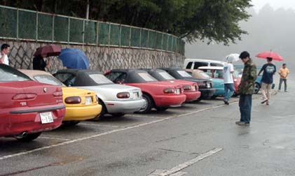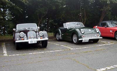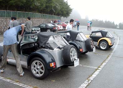 雨でロードスターやセヴンなどのオープンカーは幌掛け。