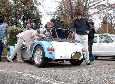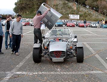 |  | なにやら黒山の人だかり。 TDMでは見慣れたセヴンですが何かが変! そうナンバープレートが黄色い!という事は軽自動車! なんとエンジンがスズキのカプチーノに搭載されているエンジンらしいのです。 このセヴン、メーカーはフレイザーのようです。 |