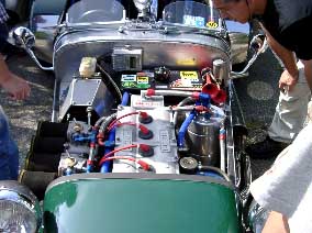 | このトヨタスポーツ800もグッドコンディション、エンジンルーム内も懐古的で懐かしい感じです。 | |