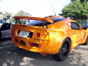 | なんか速そうな車。 ロータスのEXIGE(エクシージ) ロータスエリーゼのようですが、これはワンメイクレース用スポーツエリーゼの公道バージョン。 大きな羽根が格好いいです。 | |