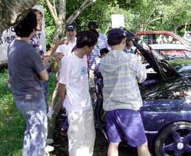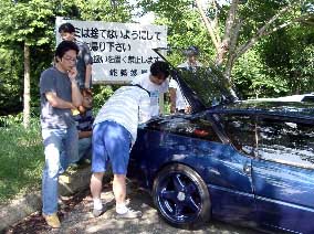 次第に観衆が増え話の内容はやっぱり熱のこと(笑)得体の知れぬ車、これは一体?