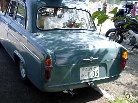 | これも珍しい。 普通の車のようで普通でない車、その証拠にリアウィングの大きいこと、暴走族も兄ちゃん達も一目おくようです(笑) エンジンにはカタツムリが装着されています。 | |
