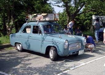 | こんな車始めて見ました。 1960年製のフォード プリフェクトという車らしいです。 排気量は忘れましたが、OHVで昔のセヴンなんかにも積まれていたエンジンだそうです。 |