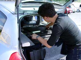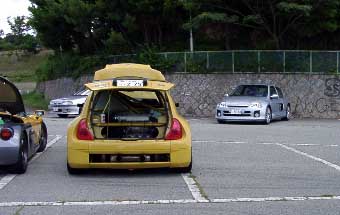 | V6のハッチを開けて覗いてみると、エンジンフード以外はいたって普通のクリオ。 エアコンも良く効くし、乗り心地もいたって普通だそうです。 | |