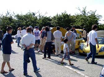 遅れて登場した2台の車になにやら黒山の人だかり。