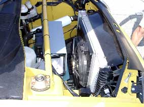 | ラジエーターコアの大きさはほとんど同じようでした、ただ冷却ファンがクリトロ1個に対しV6は2個装備されています。またサスペンションのアッパーマウントはクリトロがキャンバー調整可能なのに対し、V6はルノーではお馴染みのマウントゴム挟み込みタイプです。 | |