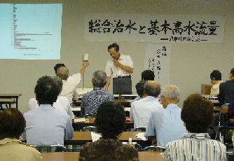 武庫川ダムの学習会にいきました 9月23日、「武庫川ダムを考える会」が学習会をやるというので、西宮へ出かけました。 武庫川ダムをめぐっては、武庫川流域委員会というのをつくって、専門家や住民も入って武庫川水系の治水を検討しています。現在は「基本高水水量」をどう設定するかに論議の中心があるようです。 専門家のお話で、なかなか分かりにくいのですが、100年に1度の大雨に備えるのか、いや30年に1度でいいなど、意見が出されているようです。何年に一度の大雨に備えるかで、流量がずいぶん違い、ダムが必要なのかどうかが分かれるようです。 いずれにしても、武庫川の堤防で一番弱い(断面が狭い)のが、阪神電車のあたりだと聞いて、「これは大変だ」という思いを強くしました。 |