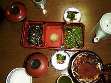 | 腹も減ったので(すでに14時30分)以前食べたひつまぶしを目指し熱田方面へ ・・・・・ ・・・・ 店に到着が16時・・・・・名古屋市よ渋滞をなんとかせい!! ついたらついたで、お店の開店まで30分あるしで、熱田さんを詣でて ![]() なんとか、朝、昼、夕兼用の食事にありついた。 そのままで食べて、薬味を入れて食べて、最後にお茶漬け