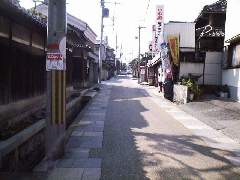 西国街道は、最近所々こんな風にカラー舗装されている。 右に見えてるのは「佐々木酒店」 |